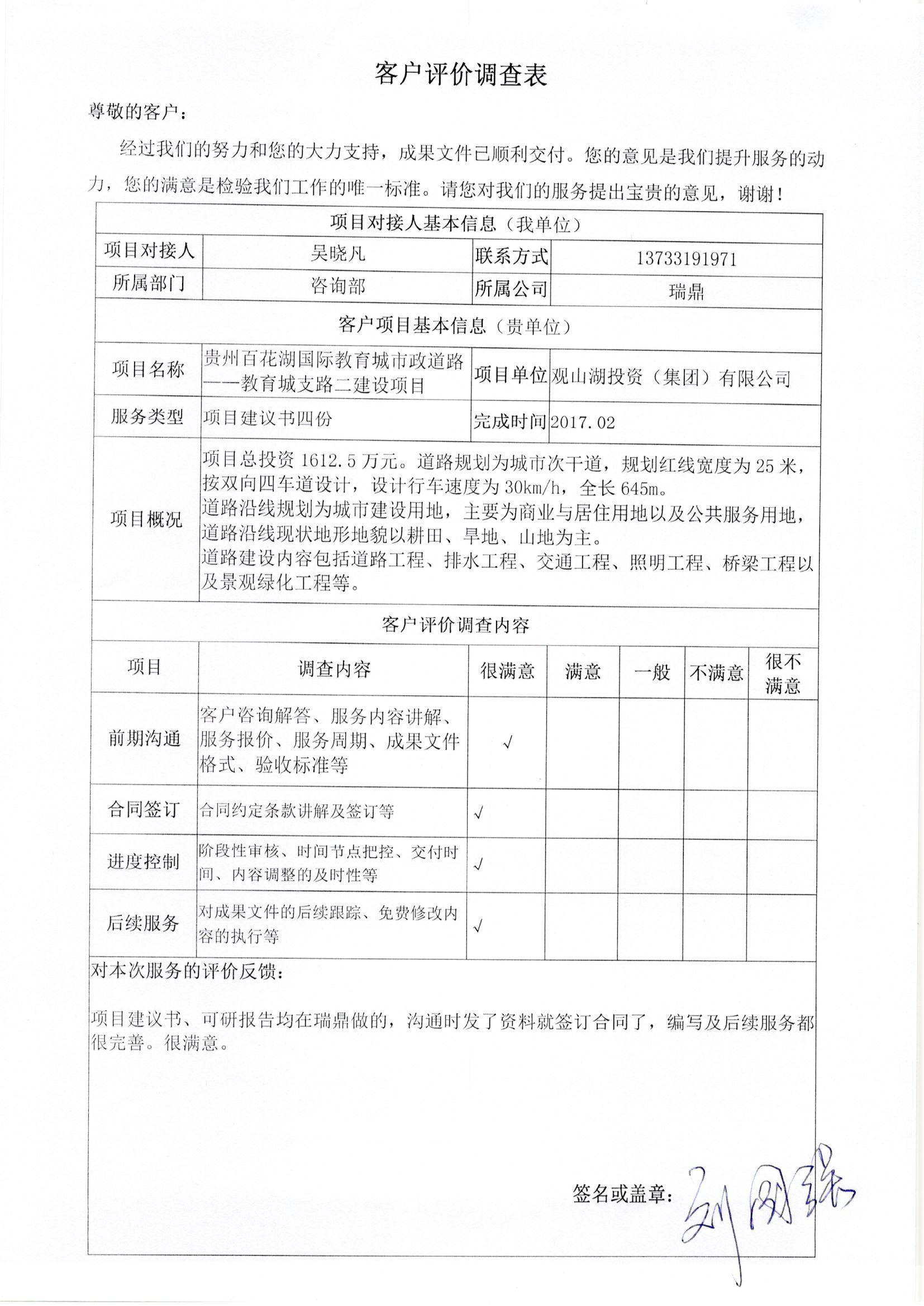 貴州百花湖國際教育城市政道路教育城支路二建設(shè)項(xiàng)目客戶評價(jià)…… |